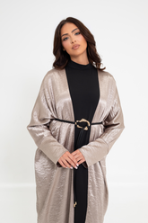 The Alma Batwing Abaya is designed to make a quiet statement through texture and silhouette. Crafted from a soft crinkled fabric with a subtle sheen, it catches the light while maintaining an elegant flow. The relaxed batwing sleeves create graceful movement and effortless refinement.
